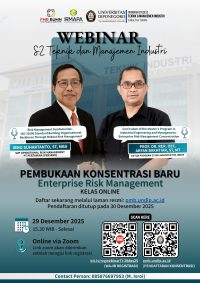 Departemen Teknik Industri Universitas Diponegoro mengundang Bapak/Ibu/Saudara untuk mengikuti kegiatan Pembukaan Konsentrasi Enterprise Risk Management pada Program Studi Magister Teknik dan Manajemen Industri & Webinar