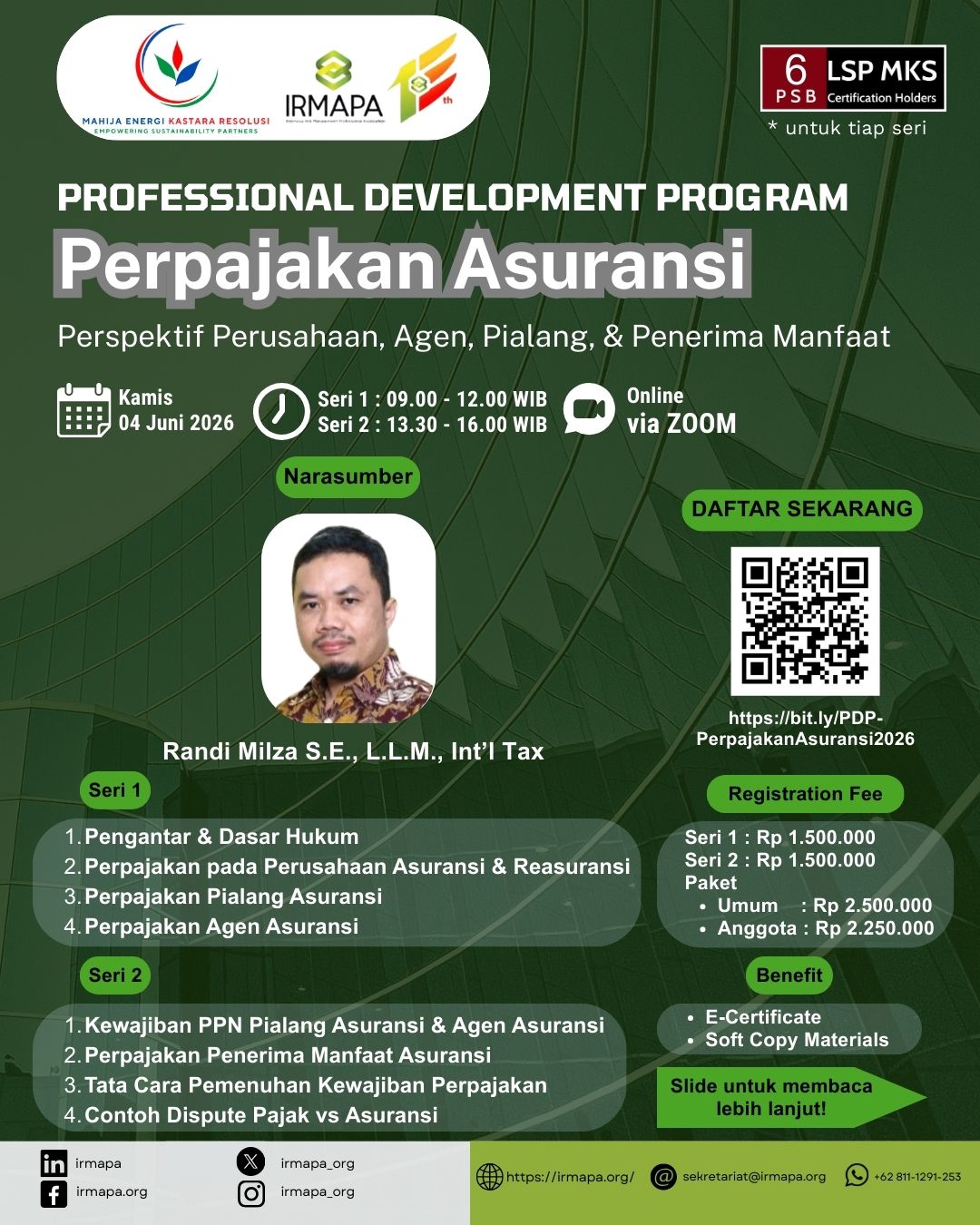 Professional Development Program – Perpajakan Asuransi: Perspektif Perusahaan, Agen, Pialang & Penerima Manfaat